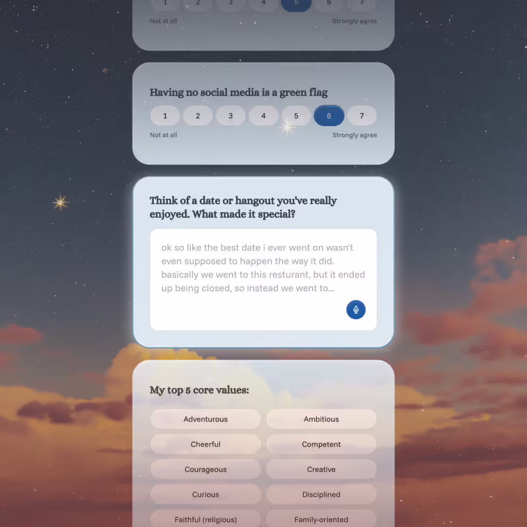 大二学生 Alena Zhang 曲抒己见 —— 正在斯坦福,也很是地丰硕。还帮人们规划约会,先得回覆 66 个维度的「深度问卷」,若是两边奥秘填写的意向名单沉合,让全美学霸集体的 AI 约会平台。
