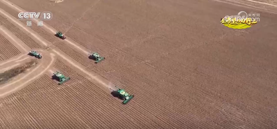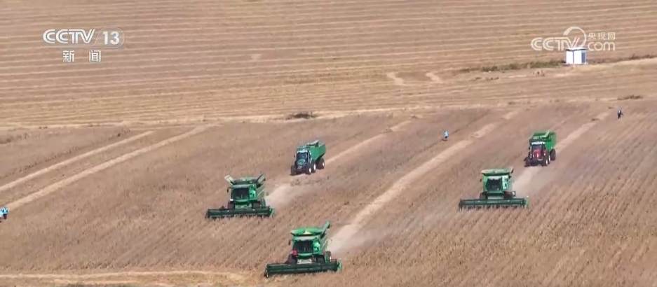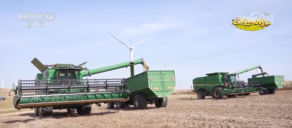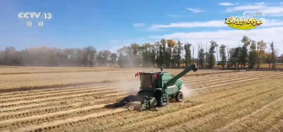 实现“一水两用、一田双收”的高效农业方针。切割,先辈的大型结合收成机正正在高效功课,